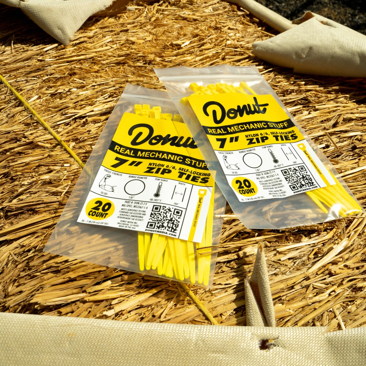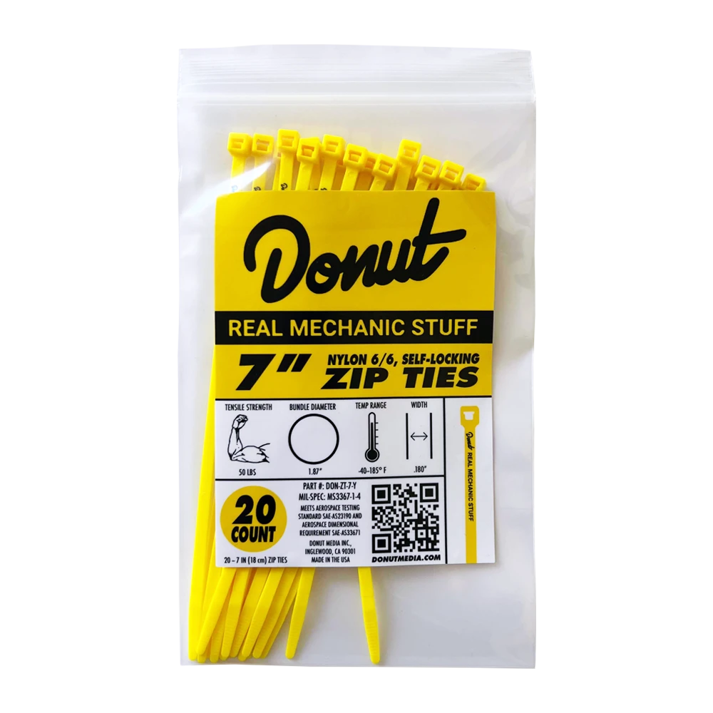 Zip ties are one of the most important tools you can keep in your car at all times. Fun fact: you can fix about 99% of mechanical issues with just a few zip ties (probably). So what’s the catch? Most zip ties are not yellow with “Real Mechanic Stuff” written on them. Finally we have a solution: Donut Zip Ties, sold in packs of Twenty (20).