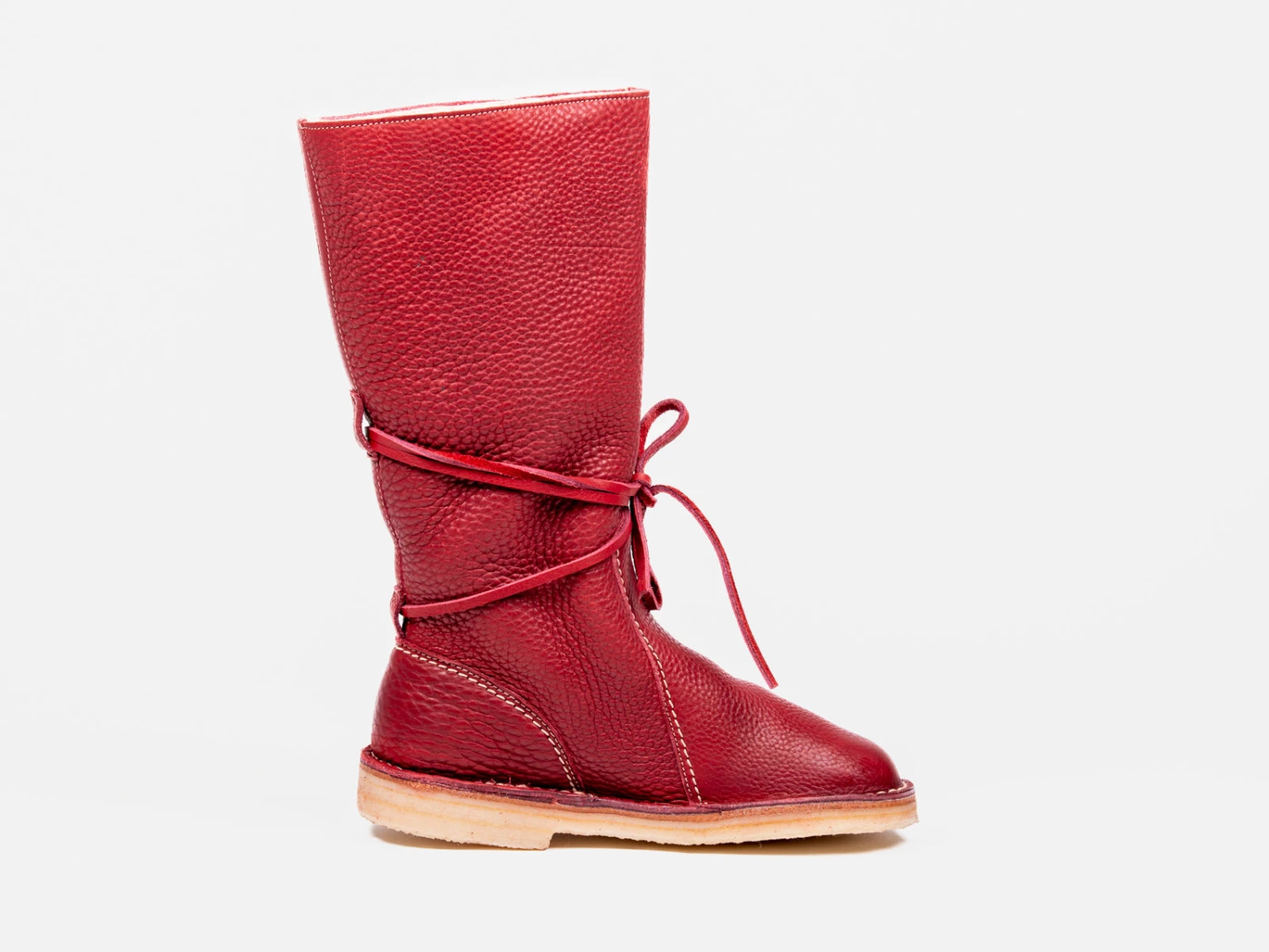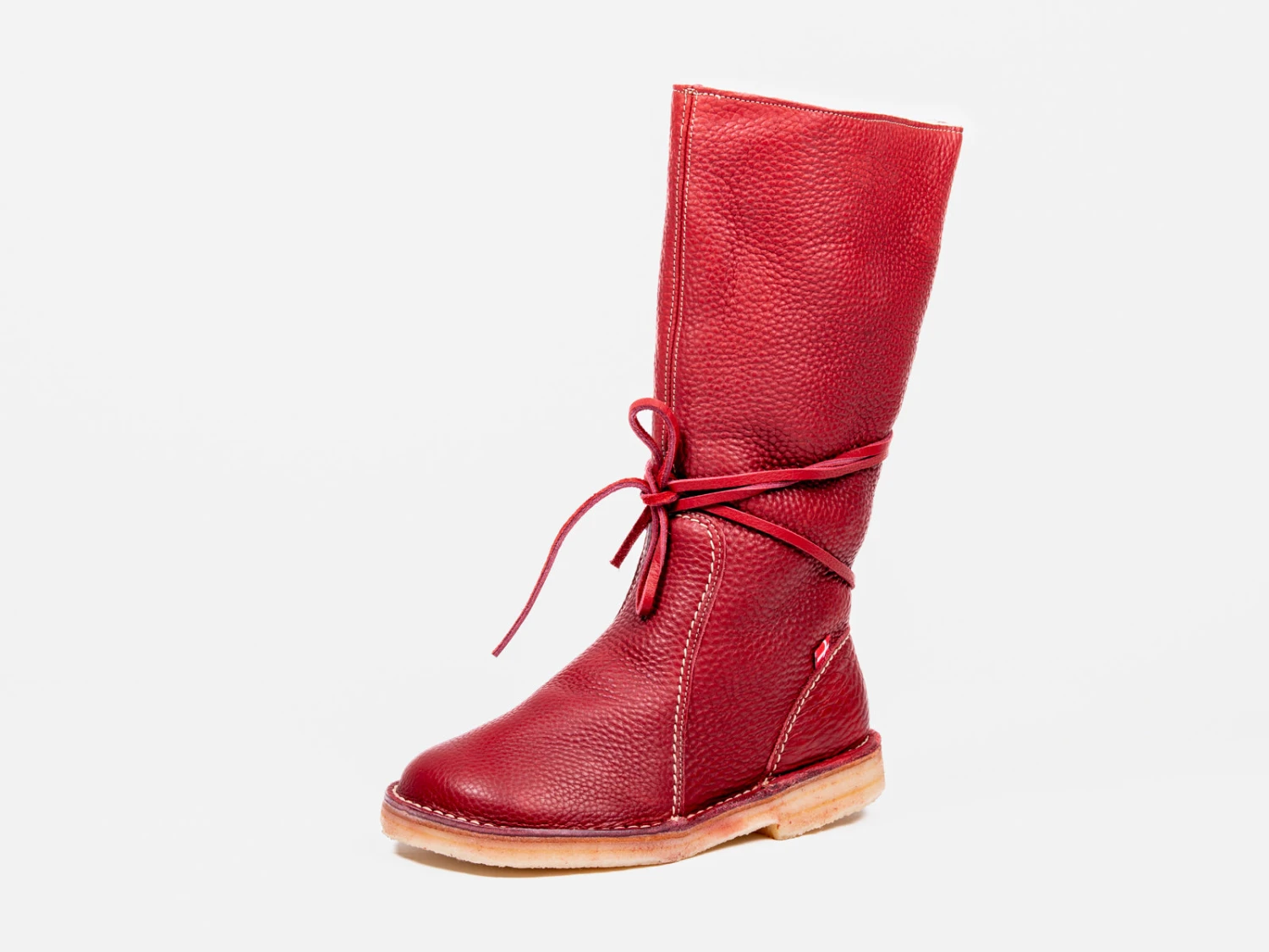 The Silkeborg [silk-e-bor] boot offers instant warmth and comfort with its buttery-soft tumbled leather and 100% premium European sheep wool lining. This unisex pull-on boot features a higher cut that rests below the knee and unique wrap-around lacing for added detail. Plus, the natural crepe sole can be replaced when worn, extending the life of the boot for years of warm and comfortable wear.